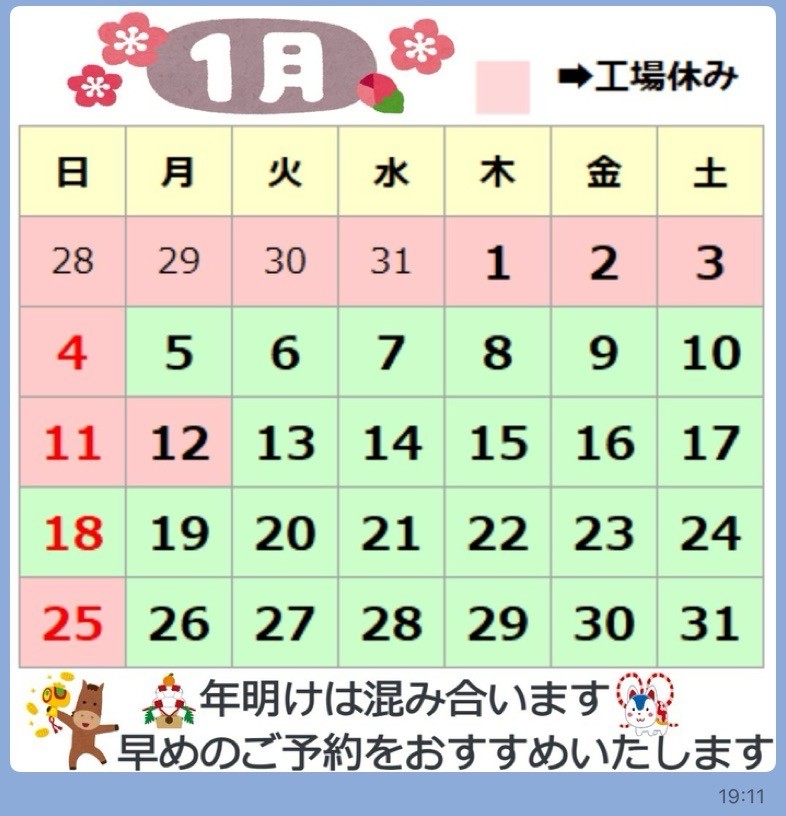 新年の営業:1月5日より (休業期間:12月28日〜1月4日まで)